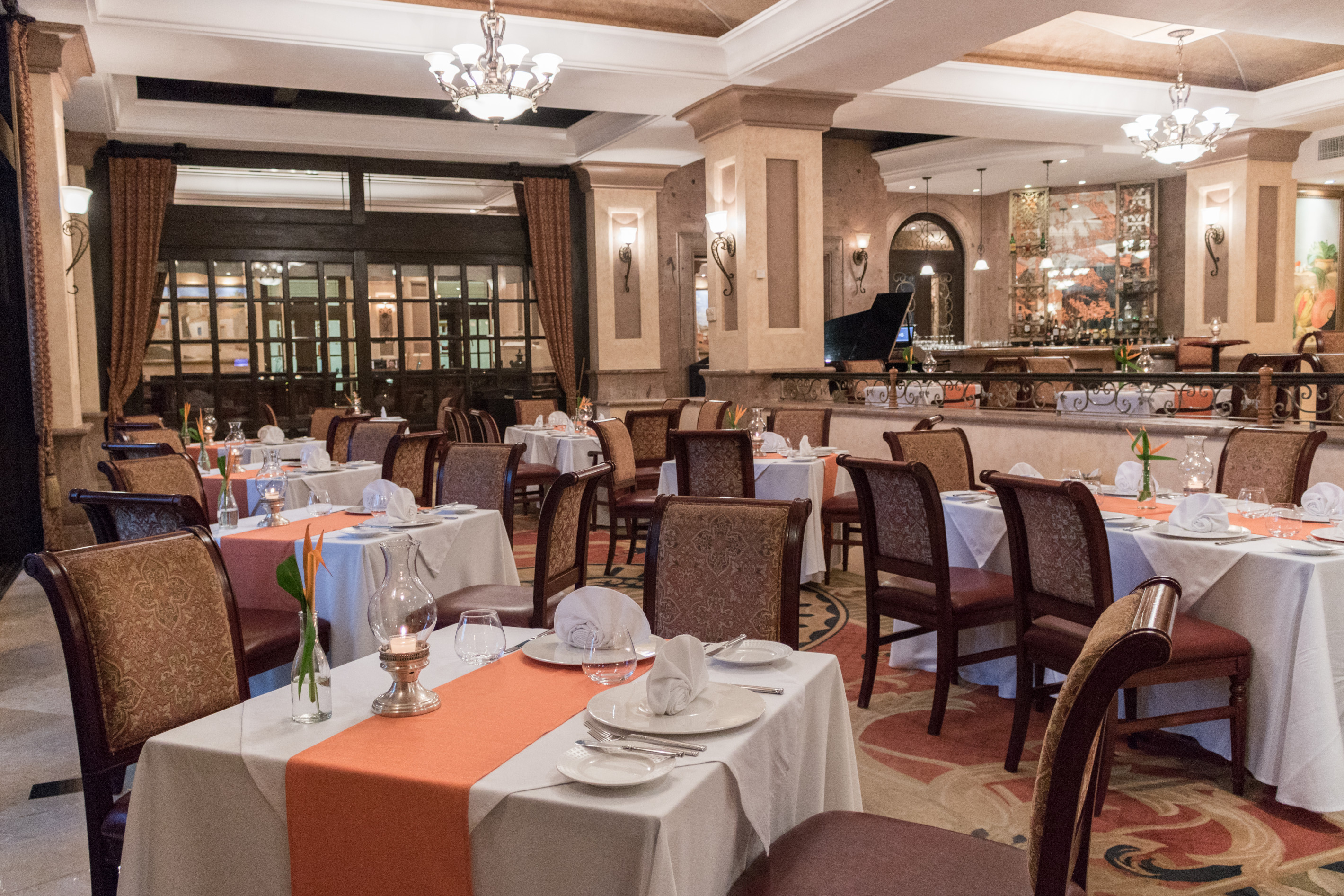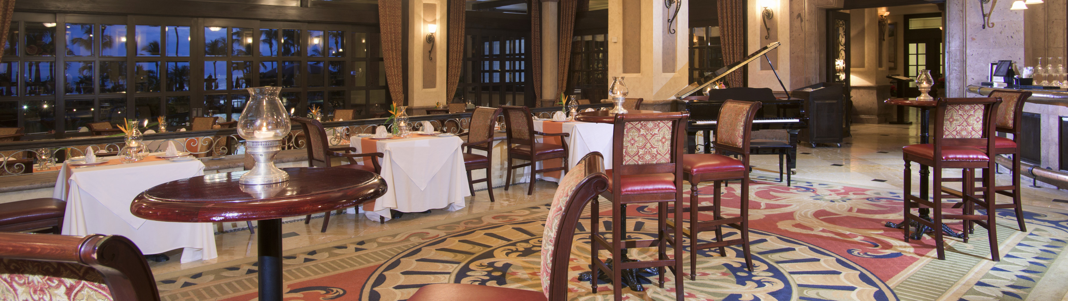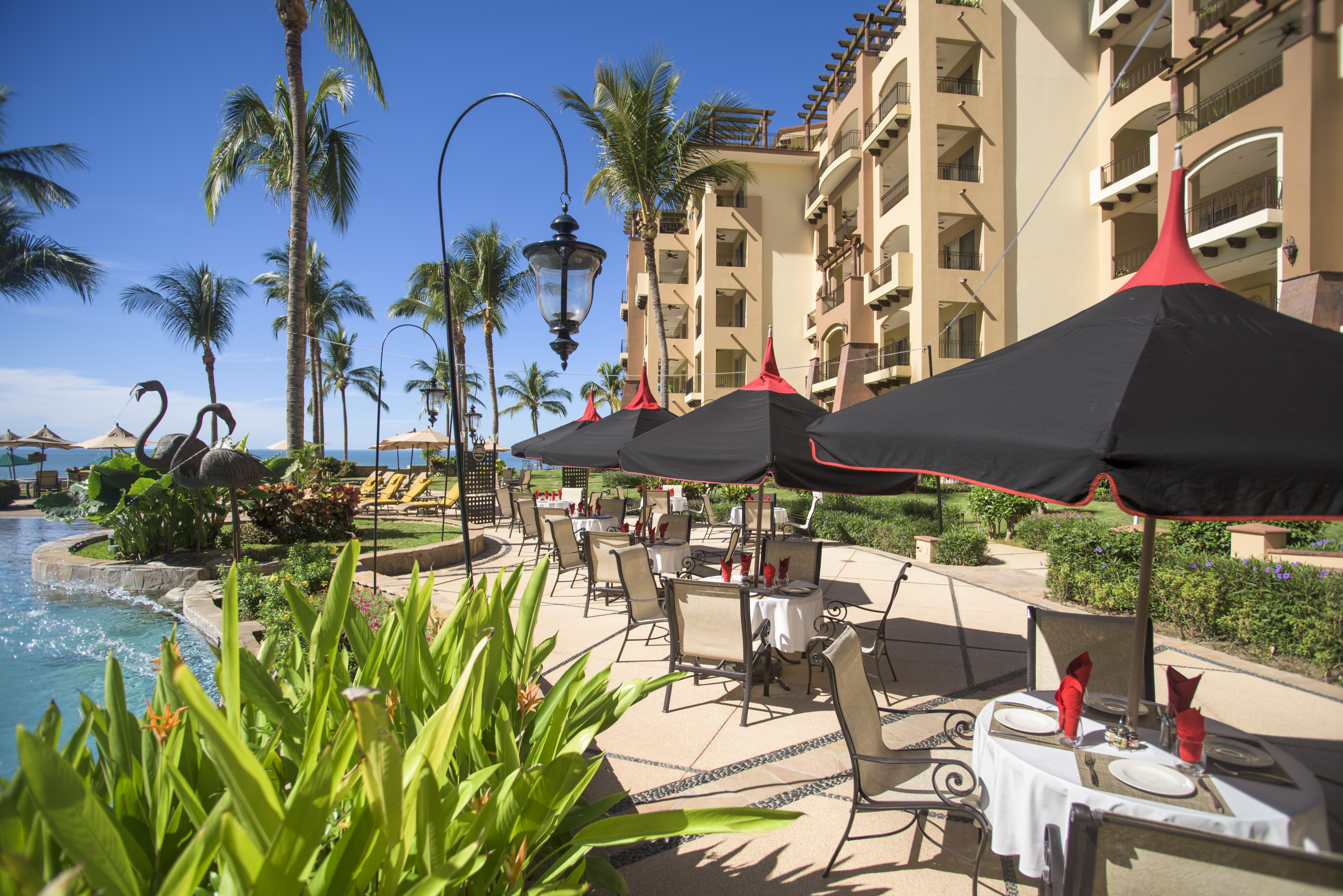 Take your pick of indoor or outdoor dining at La Casona, our Mexican eclectic steakhouse with its variety of flavors and extensive selection of steak specials and Prime Cuts such as Kobe beef and the New York Strip. It is also known for its wide variety of eggs benedict for breakfast. If that's not all, the restaurant lays claim to some of the best seats in the house: The breathtaking scenery of Banderas Bay stretches beyond our beautiful fountains and grounds.